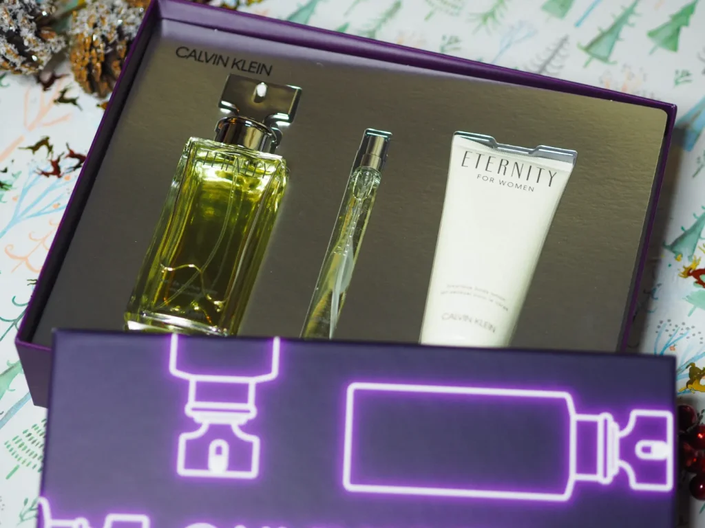 Moving on to the Euphoria scent from Calvin Klein which is another iconic popular perfume for the brand. This also comes in another great gift box which means you don’t really have to wrap it up. It’s already presented so lovely. This gift set includes a 100ml bottle of Euphoria and a body lotion. As you can see the bottle is just iconic and would look lovely on a dressing table. This perfume is a favourite of mine and one that’s great for wearing on a daily basis. It’s got a very feminine feel with notes of Pomegranate, lotus blossom and violet. You won’t go wrong with this one!