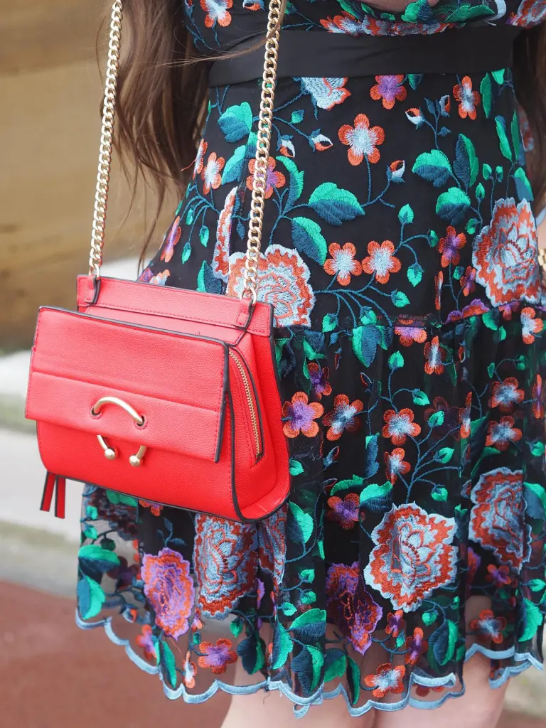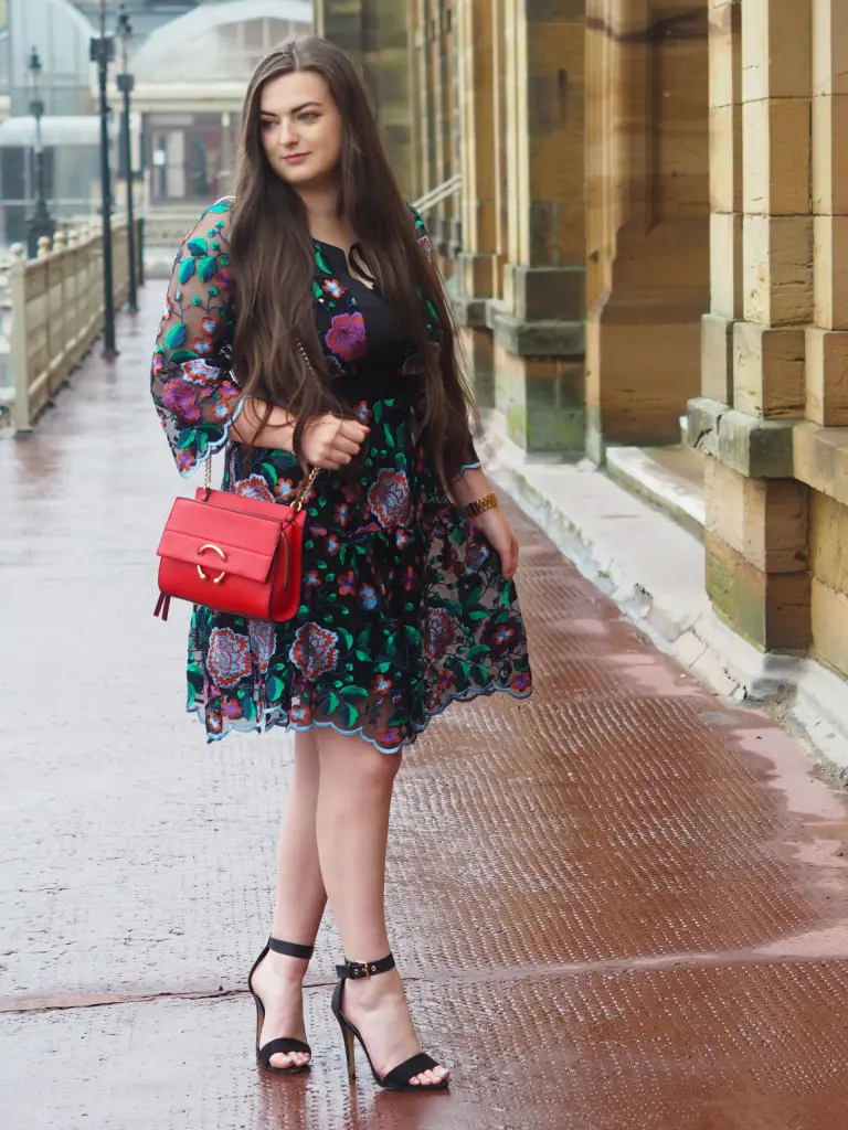 We all know I’m a big fan of Closet London. I just love that they are so well made and obviously undeniably incredibly pretty. I immediately got the heart emoji eyes when I saw this dress on the website. The floral embroidered detail and the scalloped hem was calling my name. I paired the dress with my simple black Primark heels and this gorgeous Mango rouge handbag. Mango is really impressing me at the moment, every time I go in-store my mental wish list gets longer and longer. I love that this bag gives the outfit a little pop of colour yet matches the embroidered flowers.
