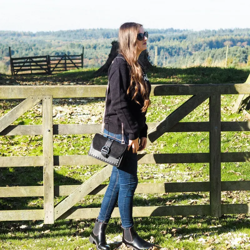 Another new addition for today’s outfit is my new bag from Topshop. For months now, I’ve gone in-store and seen that there has been so many gorgeous little shoulder bags. After being really lucky and receiving some gift cards for my Birthday, i decided to treat myself to one. This black and silver studded bag goes perfectly with the Chelsea Boots and it was only £29. Not only do they go so well with the boots, it’s just one of those pieces which goes well with any outfit. It snugly fits everything that I need on a day to day basis.