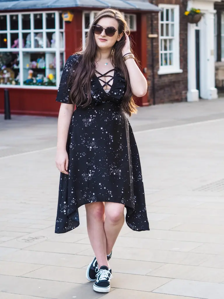 I’m a little bit in love with these dress from Boohoo, the star print trend is so cute! It’s a perfect transitional piece for Spring and as the weather gets a little warmer, I can finally get my (very pale) legs out! Pass me the fake bake! As I was having a chilled day of shopping and lots of food, I paired the dress with my Vans but you could easily pair it with heels to dress up for date night or a special occasion. This dress would also look amazing at a festival with a pair of wellies. The best thing about this dress?